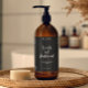 Um rótulo à prova d'água elegante para produtos cosméticos feitos à mão. Este rótulo apresenta um fundo preto com texto branco, uma fonte de script para o cheiro do seu produto e tem espaço para o seu nome comercial, nome do produto, descrição e instruções do produto e lista de ingredientes.