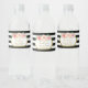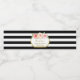 Rótulo de garrafa de água de texto personalizado em um padrão de listras preto e branco com flores cor-de-água rosa claro e cor-de-rosa claro e moldura dourada. Pode ser personalizado para qualquer ocasião, perfeito para chás de panela, casamentos, chás de fraldas e festas de aniversário.