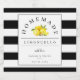 Limões e folhas de aquarela, etiqueta de bebida de limoncelo moderna. Recursos de etiquetas, fundo do padrão de faixa branca e preto-e-branco.