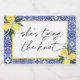 Este rótulo de champanhe para chá de noiva com limão mediterrâneo apresenta uma imagem exclusiva de azulejos azuis escuros e amarelos pintados à mão com limões em aquarela! Com um toque de tipografia moderna, este tema inspirado na Costa Amalfitana Francesa é perfeito para qualquer estação do ano!
