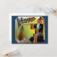 Ilustração vintage de rótulo de charuto, arte de anúncio para charutos Wizard com um feiticeiro mágico. O velho está vestindo um manto e chapéu e agitando uma varinha mágica com um gato preto.