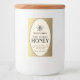 Personalize a sua etiqueta de mel com o seu nome, endereço, nome comercial, peso líquido do mel, descritores e informações de contato. Abelha heráldica venenosa com borda oval sobre fundo de gradiente dourado. Excelente para garrafas maiores.