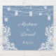 Essas etiquetas de garrafas de cerveja azul, refinadas e empoeiradas, com luzes de cordas, jarras de pedras e ornamentos de rendas são perfeitas para qualquer jardim, exterior, formal, vintage, casamento romântico. É a design fluida suave que é moderna, mas tradicional. Eles seriam fabulosos para sua festa de noivado, janto de ensaio, recepção de casamento ou celebração de casamento. Selecione Personalizar esta modelo para torná-las exclusivas suas. Em segundos, você verá suas maravilhosas etiquetas de garrafas de cerveja.