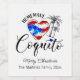 Uma etiqueta de garrafa de Coquito caseira com uma bandeira cardíaca e design de palmeiras. É uma etiqueta festiva para as festas de férias ou para os presentes de férias.