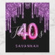 Para um aniversário de 40 anos moderno, moderno e glamouroso. Um clássico fundo preto elegante, decorado com púrpura escura, púrpura e púrpura, pingos, pintura pingando. Com o texto: 40 e Fabuloso. Personalize e adicione um nome. Texto cor púrpura. A palavra Fabuloso é escrita com um moderno estilo escrito à mão. O número 40 é escrito com uma fonte de estilo de balão.