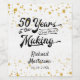 Comemore um aniversário de 50 anos com vinho de confete preto e dourado ou etiquetas de bebidas com design de tipografia de script retrô com 50 ANOS NO FAZER que incorpora seu ano de nascimento no design e inclui seu texto personalizado (a amostra mostra NOME) e data. Entre em contato com o designer por meio do Zazzle Chat ou makeitaboutyoustore@gmail.com se você quiser que este design seja modificado, em outro produto ou quiser coordenar itens.