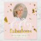 Celebre fazer 50 anos com um design de aniversário moderno, cor-de-rosa e folha de ouro, que você pode personalizar para a sua quinquagésima festa de aniversário. A palavra "cinquenta" é definida com tipografia manuscrita de pincel branco e a palavra "fabuloso" é colocada em folha de ouro falsa, utilizando uma fonte popular. Um fabuloso confete dourado com um efeito 3D espalhado em um fundo rosa que pode ser alterado usando o menu de edição. Personalize com sua foto e texto. Parte de uma coleção. ©Design criado por Marisu Valencia.