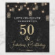 Adicione um toque especial enquanto celebra o presente Fabuloso 50º aniversário do seu amado presente com este design de aniversário clássico, 50º, que é fácil de personalizar apenas para aquela aniversariante especial. 50 e Fabuloso em ouro e mármore preto com cordas ouros de luzes. Luzes de jarro de pedras, e belos scripts.
