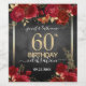 Elegante Faux gold confetti destaca na borda superior e inferior. Rosas vermelhas profundas brilhantes com sotaques florais dourados. Todo o texto é ajustável e fácil de mudar para as necessidades do seu próprio partido. design excelente de 60º aniversário elegante.