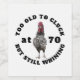 Um 70 engraçado aniversário sobre a etiqueta do vinho do Hill Rooster Party, Coloque algum humor em sua festa com essa linda etiqueta de galo preto e branco. Fundo personalizável branco com galo centrado no rótulo e na frase engraçada "muito velho para bater aos 70, mas ainda chorando." Veja também outros produtos correspondentes aqui nesta loja.