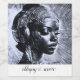 A beautiful african-american woman with an intricate headdress, surrounded by swirling lines of light and shadow, creating the illusion that she is made from hard metallic material.