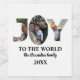 Uma alegria personalizada de três imagens de colagem ao mundo. Personalize com suas fotos, nome da família e ano Joy to the world, feliz Natal, tipografia, elegante, sagrado, moderno, religioso, cristão, xmas, inverno, cumprimentos de época, família, colagem de fotos, crie seu