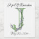 Um design romântico e elegante com a letra J monificada emoldurada por eucalipto e lavanda pintada em aquarela.