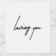 Transforme qualquer garrafa de vinho num presente sincero com esta etiqueta de vinho "Loving You". Perfeito para aniversários, jantas românticas, ou comemorações pensativas, este rótulo elegante adiciona um toque de amor e charme aos seus momentos especiais. Uma maneira simples e significativa de dizer "Eu te amo.