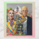 American Gothic was an iconic painting by the American artist Grant Wood. Models for the original painting were his sister and his dentist. Many people who have seen the original painting often mistake the two subjects as husband and wife. I have given this classic painting an updated twist by adding a lively character in colorful clothing, a bald head, and curlers.
