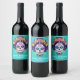 Marca de Aniversário do Açúcar Floral Saboroso Personalizado Crânio Aniversário do Vinho - Cores de Verão Negros e Vibrantes adoram este esqueleto de açúcar maravilhosamente assustador com flores na sua cabeça. Personalize adicionando seu nome ou outro texto. Perfeito para amantes do Halloween, aqueles que apreciam coisas escuras e assustadoras ou aqueles que celebram o Dia dos Mortos. Adicione um toque divertido ao seu decoro de aniversário de Halloween!