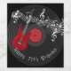 Legal guitarra vermelha, vintage, recorde de vinil preto, notas de música branca, rótulos de vinho para seu Rocker favorito. Mude a idade para o que lhe convém.
