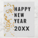 Etiquetas de Vinho de Ano Personalizado Glitter Confetti Dourado para feliz ano novo Projetadas com fundo personalizável branco e sobreposição de dourado faux glitter confetti no lado esquerdo das etiquetas. "Feliz ano novo" seguido de ano personalizado está em caracteres negros em bloco. Design e excelente modernos para decorar as garrafas de vinho da festa de Ano Novo. CLIQUE EM PERSONALIZAR OPÇÃO MODELO E ENTRE ANO