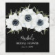 Crie seus próprios rótulos de garrafa de vinho para chá de noiva com este design personalizado apresentando flores de anemona elegantes em preto e branco e folhas em aquarela sobre um fundo preto. ITENS COINCIDENTES em nossa coleção.