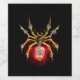 Aranha mecânica, com pá-pá de ouro, engrenagens de latão e uma lâmpada de vidro vermelha sobre fundo preto. Estilo Steampunk.