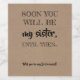 "Logo você será minha irmã, até então..." rótulos de vinho ou cerveja. Engraçado e criativo perguntar à sua dama de honra ou madrinha de casamento "Você será minha dona de ponte?"