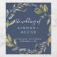 Estas etiquetas de vinho de marinho verde de outono são perfeitas para uma recepção casamento outono. A design moderna rústica apresenta folhas azuis marinhos, verdes-sábios e douradas com espirros de flores azuis escuras. Personalize os autocolantes da garrafa de vinho com os nomes, data e local. Estas etiquetas podem ser utilizadas para a recepção de casamento, janto de ensaio, festa de noivado ou simplesmente mudar a redação para qualquer celebração.