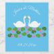 Esta maravilhosa folha de etiquetas de garrafa de vinho do Casamento apresenta uma imagem de arte digital de um belo par de cisnes brancas com bicos laranja virados um para o outro, parecendo que estão se beijando. Embaixo dos cisnes há um grupo de bonito flores lírios, cor-de-rosa, com centros amarelos e almofadas lírios verdes. Uma bela design de casamento. Há texto personalizado para que você possa incluir os nomes do casal feliz e a data de casamento.