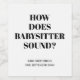Uma maneira única e fofa de anunciar um bebê está a caminho! Colocada sobre um fundo branco, a grande tipografia negra diz "Como a Babysitter Soa?!". Por baixo, em uma simples tipografia negra moderna você pode adicionar seu nome de família e data de vencimento.