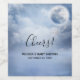 Etiquetas de chá de fraldas ou de aniversário com um céu de fantasia mágico com nuvens azuis e uma lua grande e bela. 2 cisnes brancas voando juntas.