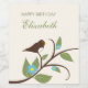 Bird birthday collection featuring a brown bird on a tree branch amidst leaves and bright blue flowers