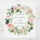 A Elegante Blush Bloom Wreath Wedding Wine Label apresenta flores pintadas a aquarela em folhagem rosa-pincel, branca e verde. Para uma personalização mais avançada deste design, clique no BOTÃO FERRAMENTA DESIGN AZUL. Itens correspondentes também estão disponíveis.