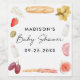 Add a tasteful touch to your baby shower celebration with this charcuterie-inspired wine label, featuring hand-painted watercolor illustrations of classic antipasto favorites like grapes, cheese, bread, olives, and cured meats. Personalized with the guest of honor’s name and shower date, this whimsical yet refined label is perfect for dressing up wine bottles at the event or giving as stylish party favors. Designed to coordinate with the full charcuterie baby shower collection, it’s a charming detail that ties your theme together beautifully.