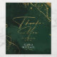 Um fundo de aquarela em tons de verde esmeralda é tocado por um abstrato de linhas de ouro finas e efeitos de iluminação reluzentes para criar as peças desta bela suíte de casamento. O rótulo do vinho de casamento mostrado aqui também apresenta caligrafia 'Obrigado' e uma mensagem pessoal junto com os nomes da noiva e do noivo e a data do casamento. Procure ID867 para ver outras peças e opções de cores para este conjunto.