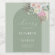 Este design de boho moderno apresenta uma forma verde-sábio decorada com um buquê floral tropical rosa e branco, realçado com folhas de palma secas e rotos de eucalipto num fundo verde-sábio pálido. A palavra "animações" aparece em um roteiro branco elegante. Personalize o rótulo com um brinde breve de sua escolha, junto com os nomes da noiva e do noivo e a localização e data do casamento.