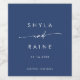 Este bichinho azul real e bico para amar o rótulo do vinho de casamento é perfeito para um casamento minimalista. O ousado design boêmico azul escuro e moderno apresenta uma caligrafia rústica simples com um estilo único, mas clássico. Personalize suas etiquetas de garrafa de vinho com seus nomes e data de casamento.