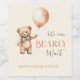 Celebrar que seu bebê chegue com esse urso minimalista inspirado no rótulo de vinho, perfeito para o chá de fraldas moderno e na moda! Apresentando um ursinho de aquarela com balão e o slogan lúdico "Nós podemos esperar cedo", este tema captura a essência da diversão e elegância juvenis. Personalize os detalhes para torná-lo exclusivamente seu e crie um anúncio memorável que a família e os amigos adorarão.