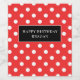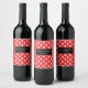 Bolinhas vermelha e branca com faixa de nome preto rótulo de vinho personalizado.