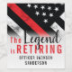 Este design apresenta uma bandeira de bombeiros com faixas pretas e brancas, e uma fina faixa vermelha de linha também. O texto "A lenda está se aposentando" fica acima do nome do bombeiro aposentado, tenente ou chefe. Celebre em estilo!