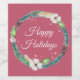 A ilustração de cor da orla do estilo Modern Boho tem ramos de abeto, folhas e bagas ocas e até algumas penas. Personalizar com sua própria mensagem de feriado em fundo de cor de bagas