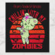 Design zombie adorável com o Urso de Teddy, todos amassados, caminhando como um zombie e morcegos sobre um fundo solar retrô.