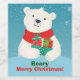 Aprecie seus entes queridos nesta temporada de festas com este adorável design de Natal com um urso polar sorridente vestindo um cachecol vermelho e segurando uma pilha de presentes maravilhosamente embrulhados com arcos. A design da frente é colocada contra um fundo azul gelado de gradiente com flocos de neve caindo, criando uma vibração alegre no inverno. O texto brincalhão, "Beary Felry Christmas!" , acrescenta um toque divertido e festivo. Totalmente personalizável, é perfeito para espalhar alegria e calor durante os feriados!