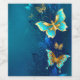 Ouro voador, borboleta de joias em fundo textural azul. Design com borboletas.