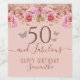Rapariga reluzente, fundo cor-de-rosa milenar, com tipografia de nome de script de rico. Feliz 50 anos e fabuloso design de aniversário. Rosas rosa e borboletas na borda superior. Excelente para a 50ª comemoração.