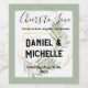 Este rótulo de vinho de casamento elegante apresenta um design botânico moderno com tons de verde suave, acentos delicados de folhas e elementos geométricos dourados sutis. O layout refinado destaca os nomes do casal e a data do casamento, criando um detalhe sofisticado e memorável para recepções de casamento, celebrações de noivado ou lembranças de casamento. A paleta de cores combina verde suave, marfim suave e toques de dourado, dando ao design uma estética botânica moderna e romântica minimalista. Perfeito para decorar garrafas de vinho nas mesas de recepção, presentear os convidados ou criar lembranças personalizadas de casamento.