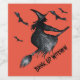A bruxa voadora na vassoura dizendo "Beba Bruxas". Laranja e preto no Halloween com detalhes de voo de morcegos. Perfeito para uma Festa de Halloween se lembrar. Feliz Dia das Bruxas!