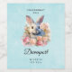 Personalized wine making bottle labels with a watercolor image. A white gray bunny rabbit surrounded by a garland of pink and peach roses. For bunny lovers and Easter themes and birthdays and showers.