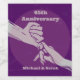 Esta design tem um marido e uma esposa com os dedos mindinhos trancados juntos. Este casal romântico está de mãos dadas para celebrar o aniversário do casamento. Você pode personalizar esta design cor-de-rosa e roxa com sua própria data e nomes de aniversário de casamento.