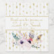 A bela ilustração da aquarela Boho apresenta flores e penas em branco com fundo de setas douradas. Personalizar com detalhes do casal de casamento