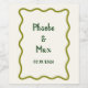 Este design apresenta uma simples, branca, estilo desenhado à mão, uma borda ondulada. A fonte usada para o texto principal é casual e divertida, com uma qualidade manuscrita, dando-lhe um toque pessoal e íntimo. Use esta design se quiser priorizar uma vibração amigável e acessível ao seu casamento sobre a formalidade.