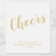 Rótulo de Vinho de Casamento Branco e Dourado de Script Moderno com o título 'Cheers' em fontes de script moderno de ouro com nome e data em fontes modernas de sans serif em fundo branco. Nota: Os detalhes da folha são simulados no trabalho de arte. Não será utilizada nenhuma folha de alumínio real no fazer deste produto.